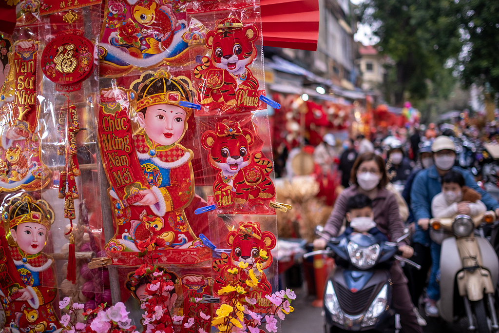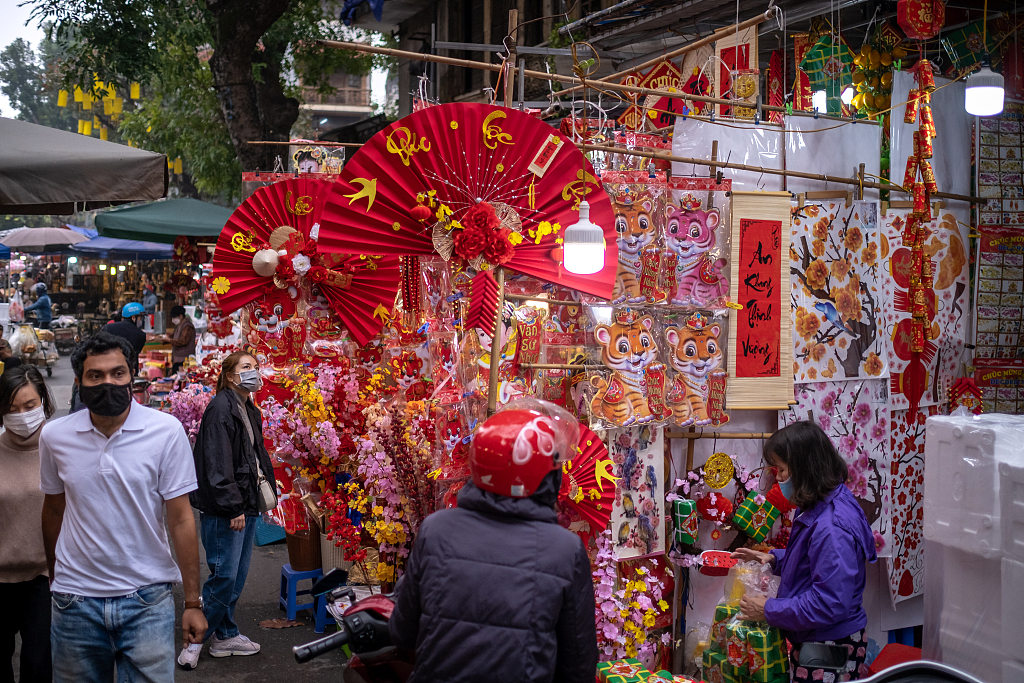 当地时间2022年1月25日,越南河内,2022春节即来,当地民众迎新年,节日氛围浓厚。