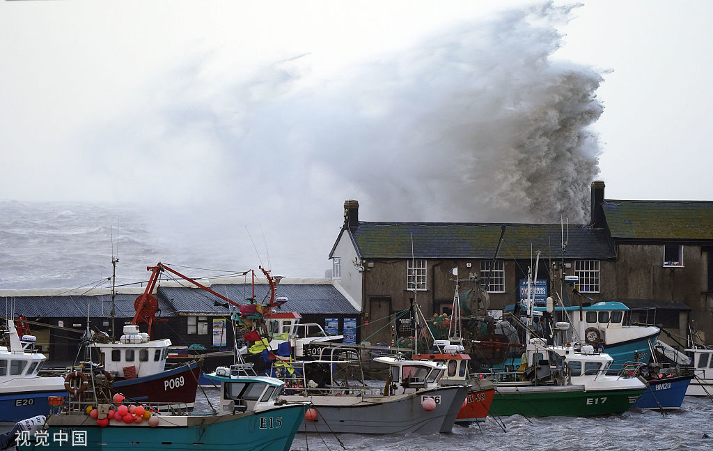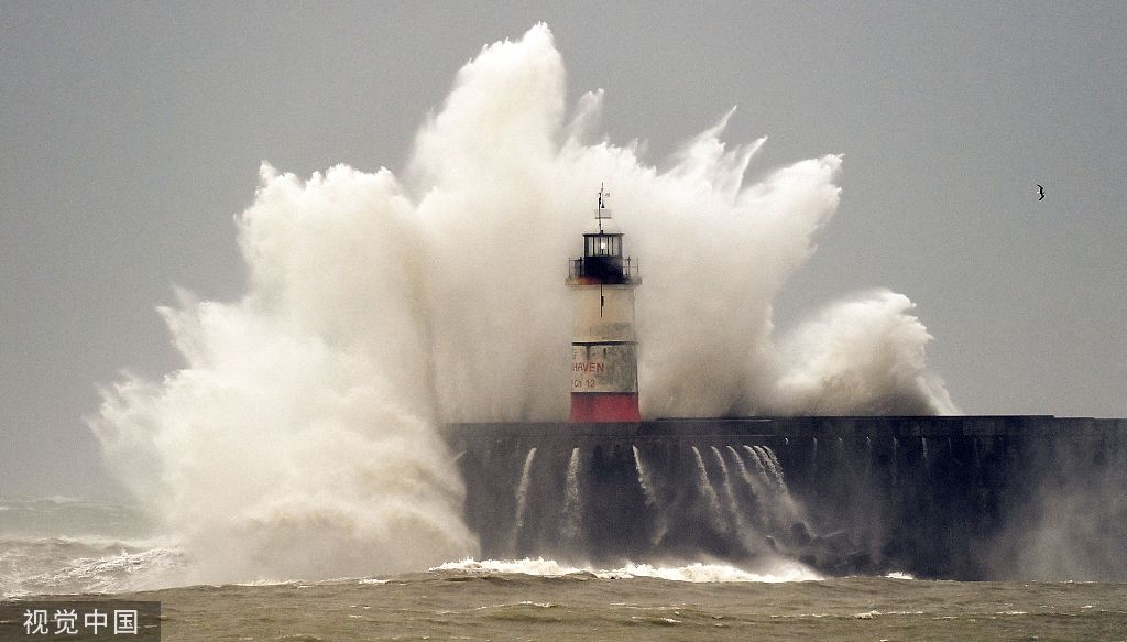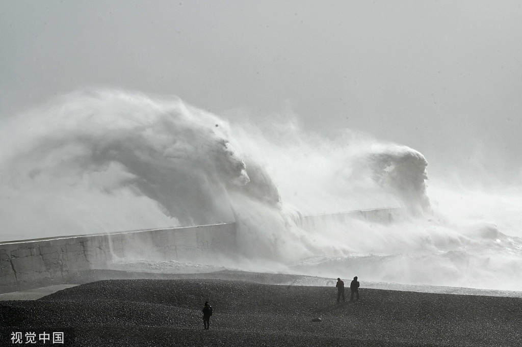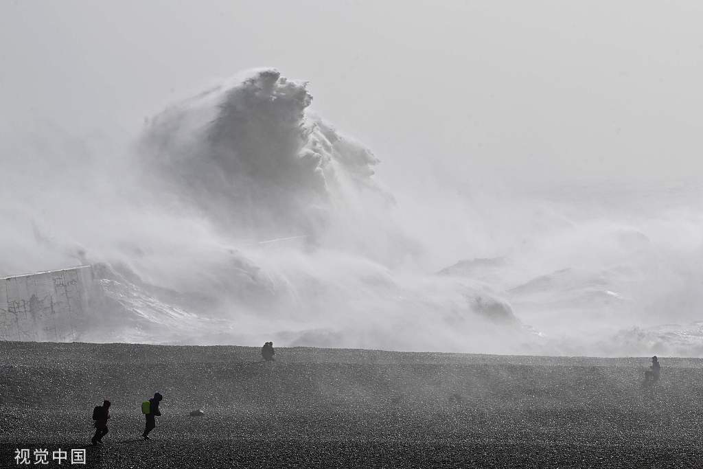 受风暴“尤妮丝”影响 欧洲多地海边风大浪高
