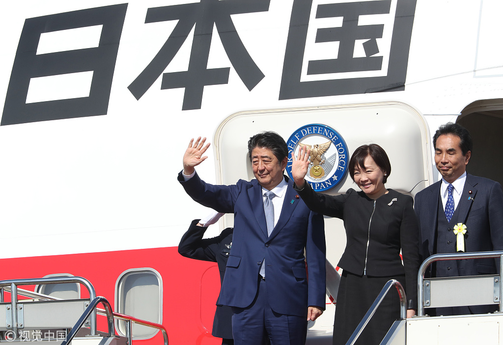 日本首相安倍晋三启程赴北京 开启3天访华之旅 视觉中国 2018-10-25 14:42 当地时间2018年10月25日,日本东京,日本首相安倍晋三与夫人安倍昭惠在羽田国际机场登机,前往中国访问。这是日本首相时隔7年来首次正式访华。图片作者:Kenya Sumiyoshi/视觉中国