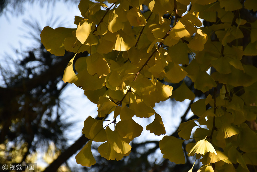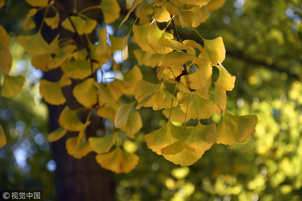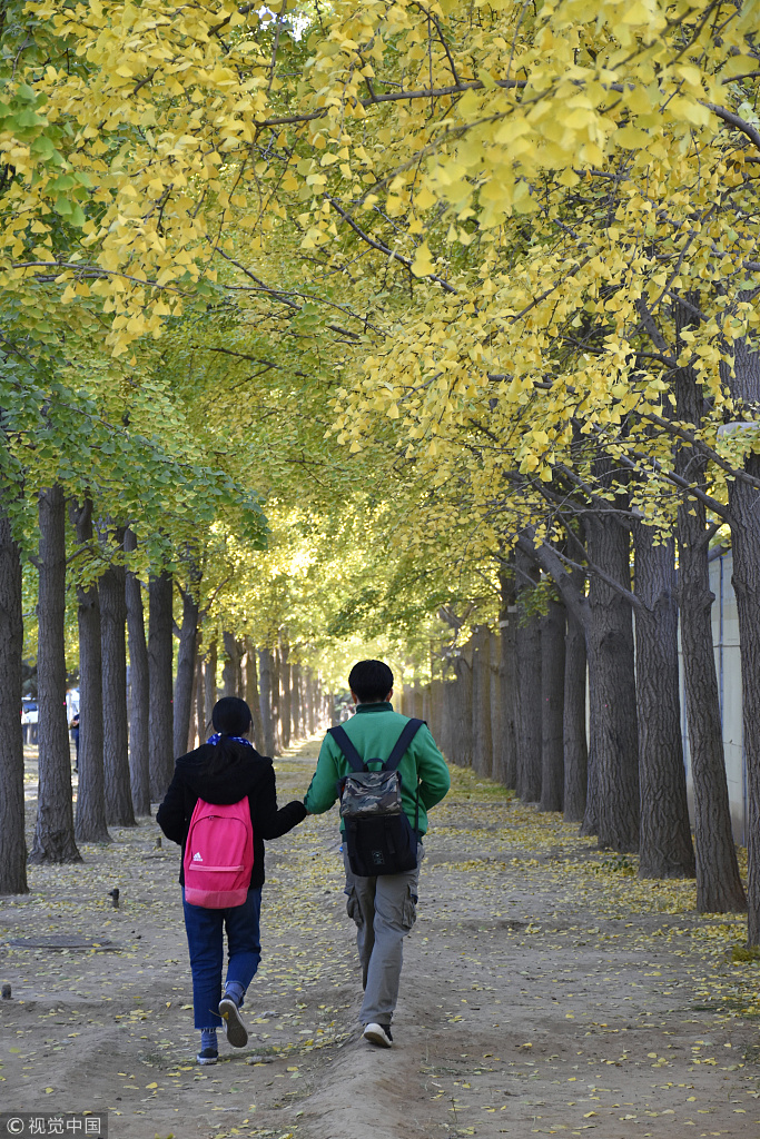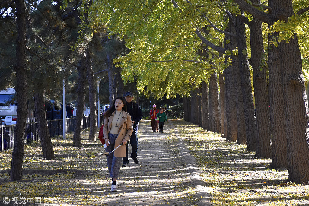 2018年10月26日,北京,钓鱼台银杏大道迎来最佳观赏期,市民游客纷纷拍照留影络绎不绝。