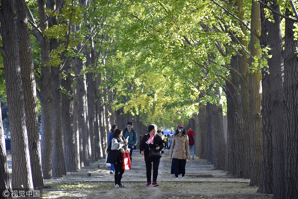 北京钓鱼台银杏大道迎最佳观赏期 游客络绎不绝