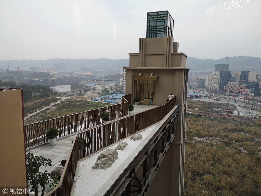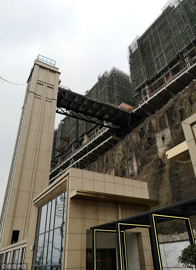 2019年2月15日,重庆渝北区西一街,一个在建楼盘将房子修建在了山顶的悬崖边上,酷似现代版的“山城吊脚楼”。楼盘一侧离公路西一街高低落差20米,房子的阳台和部分楼体凸出山崖边界线。为了满足业主以后的出行,还修建了1座升降电梯。不少网友惊叹:山城重庆地形很奇特,不愧是网红城市,靠山吃山,真佩服开发商的脑力。
