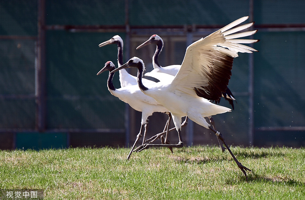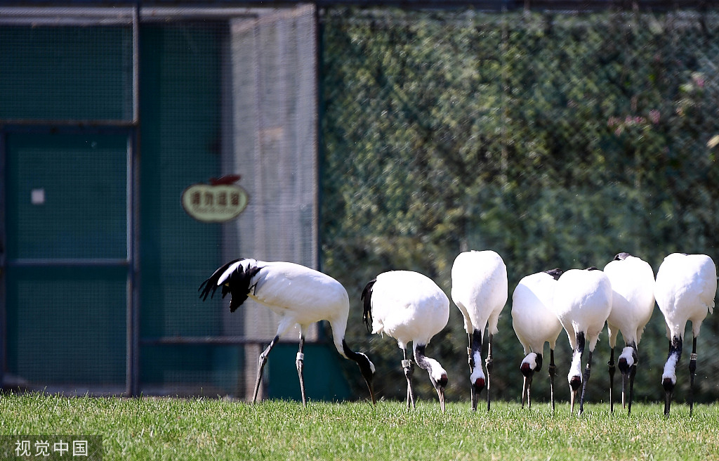 2019年9月27日,在沈阳鸟岛,孔雀东南飞、丹顶鹤行为展示演出、鹦鹉运动会、鸿雁行为展示等吸引不少游客。