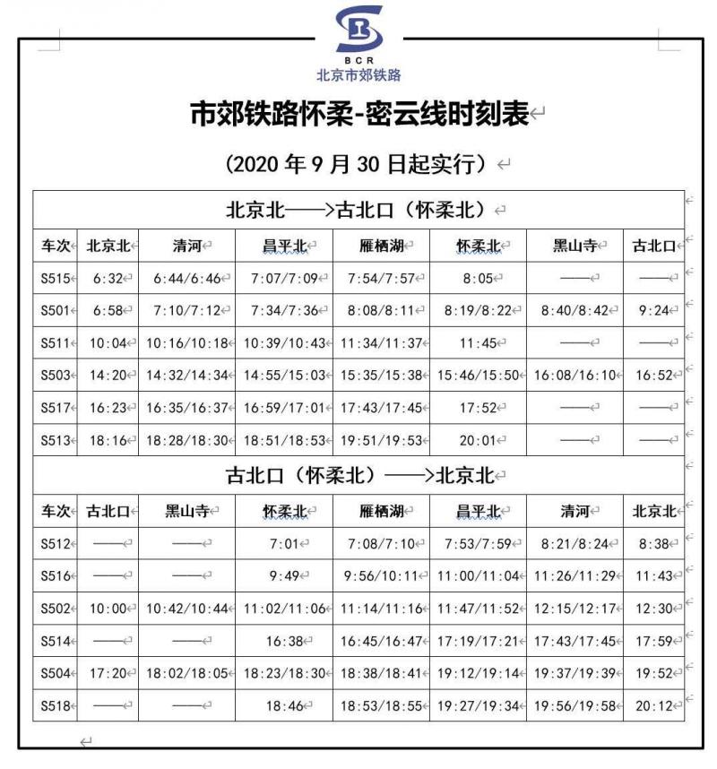 时刻表、票价来了!明天市郊铁路“怀密线”改为北京北站始发
