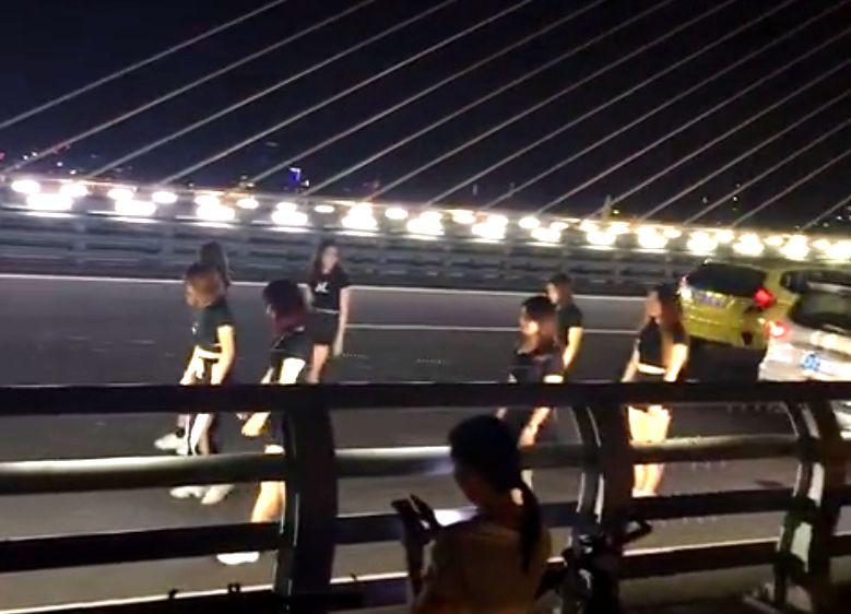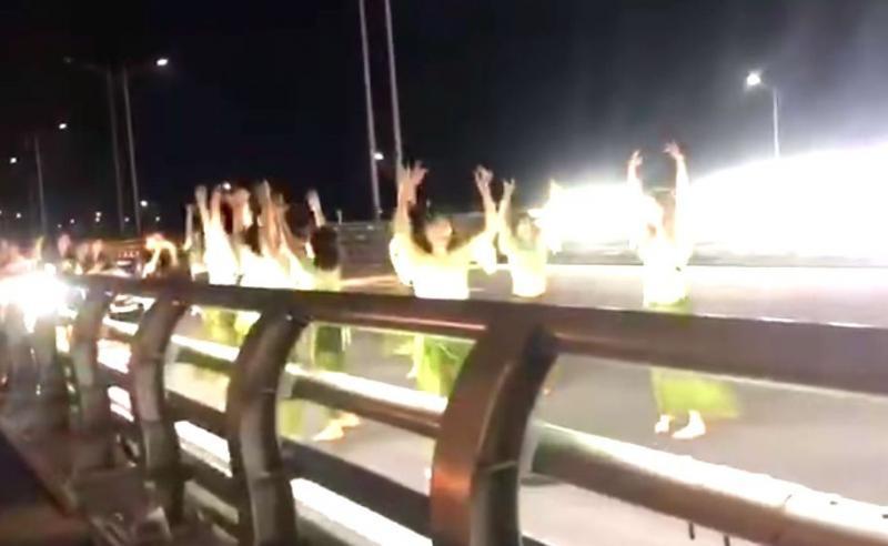 6月18日,广东省江门开平市金山大桥顺利通车。然而最近却有网友视频爆料称,大桥已经通车,但是却有人组团在大桥的启动车道上跳舞,并拍摄视频。北青报记者在网友爆出的一段视频中看到,7位身着黑白服装的女子在一辆停着的车后集体舞蹈,身边还不时有行驶的车辆疾驰而过。视频发布后,不少网友表示“看得胆战心惊”“危害公共安全”。