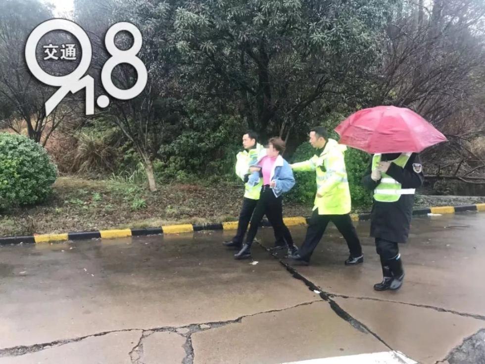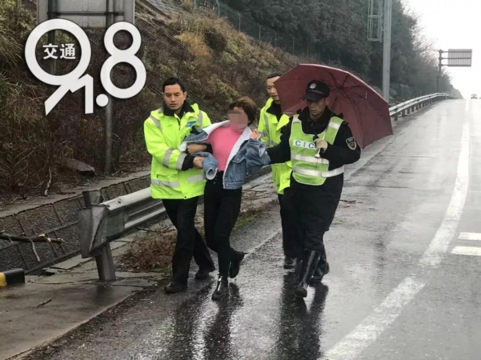 正在武义服务区整治的高速交警金华支队二大队民警看到跑进高速主线的女子,马上追在女子后面,搀扶住女子,将其领出高速,安置在执法岗亭中。
