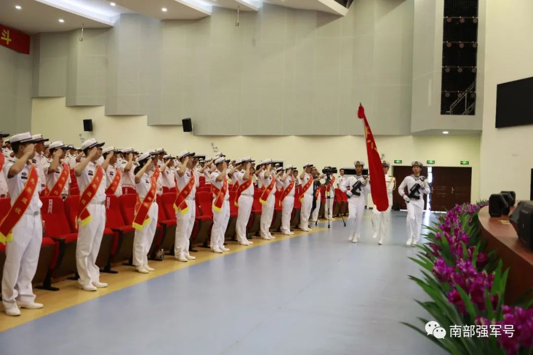 “我是中国人民解放军军人,我宣誓……”参加仪式的全体退役军官,面向八一军旗,举起右拳最后一次重温入伍誓词,铿锵誓言久久回响在礼堂上空。