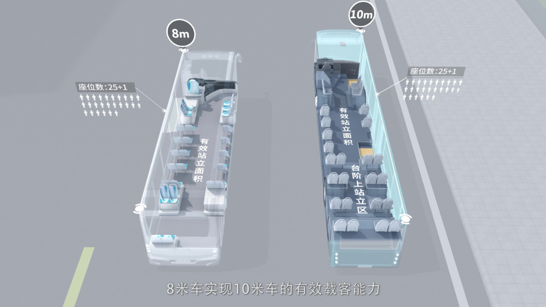 效率也是企业的追求。相关研究显示,取消车门台阶,可使乘客上下车的时间节省约50%,从而提高定线平均运输速度7.5%。同时,地板低、通道宽的布局带来了更大的乘坐空间,载客量也相应增加。