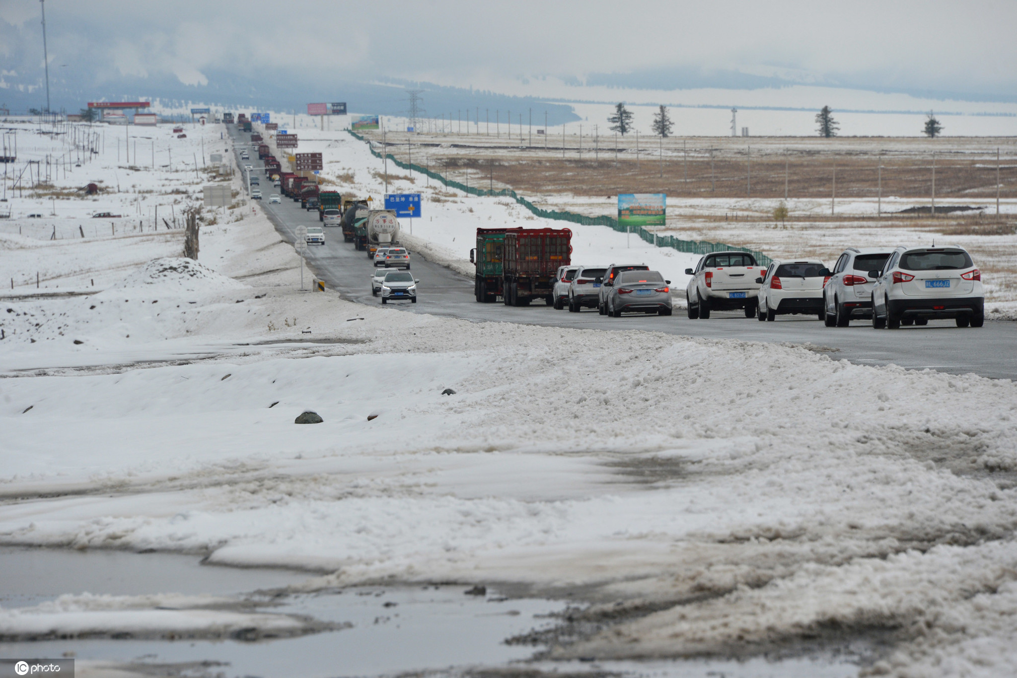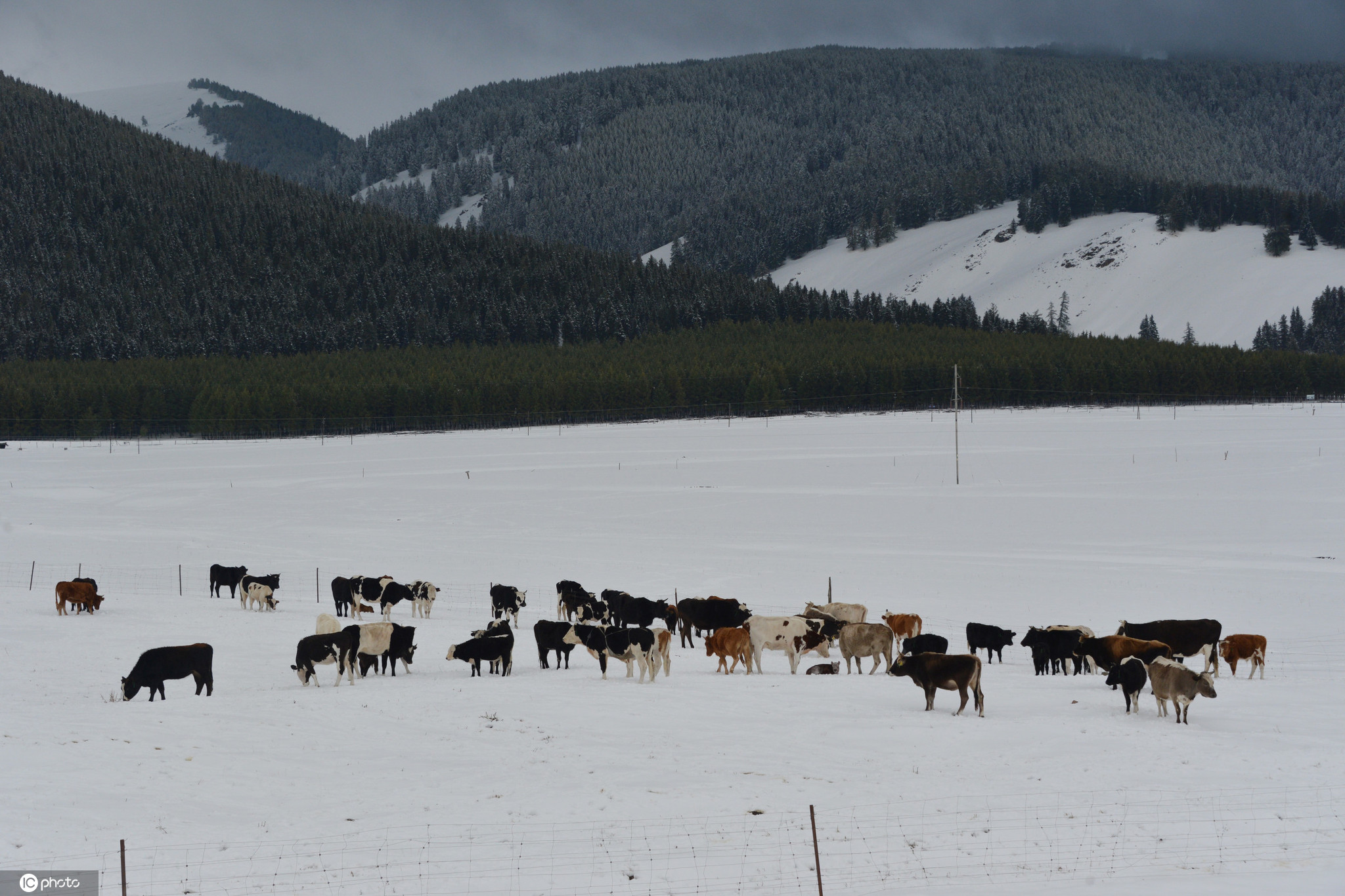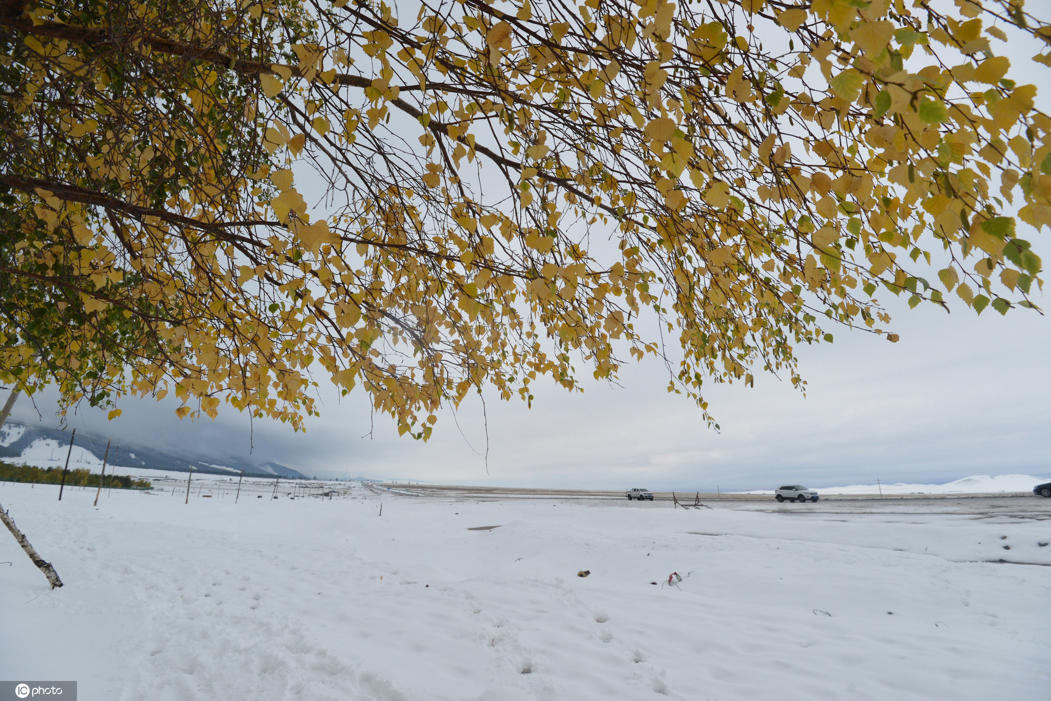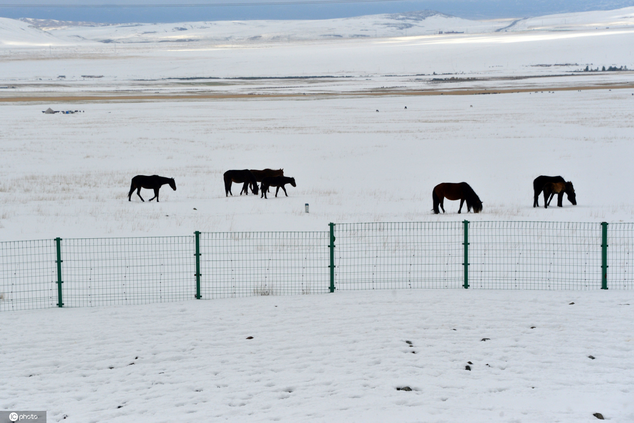 2020年9月11日,新疆哈密东天山北部迎来降雪天气,皑皑白雪给金秋的草原披上了银装,山川大地一派冬日的景象。
