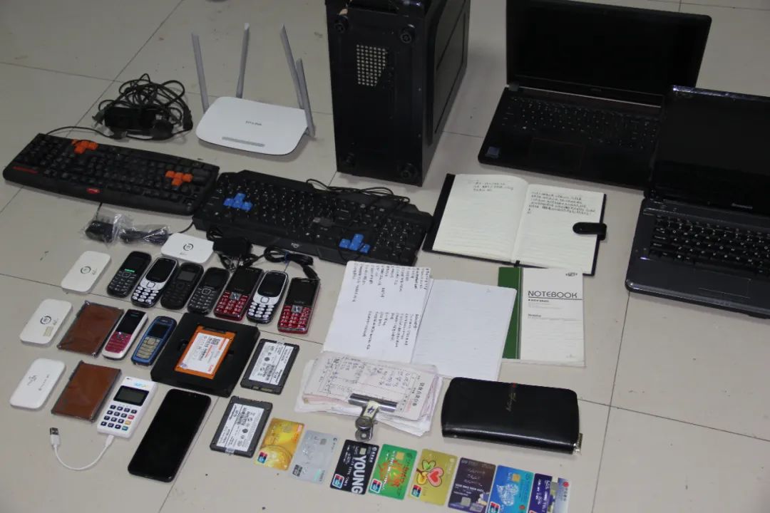 兴安县局当天抓获电诈嫌疑人12名,缴获手机23台、银行卡139张、电脑5台、u盾9个、护照5本、手机卡46张、pos机3台等。↓↓↓