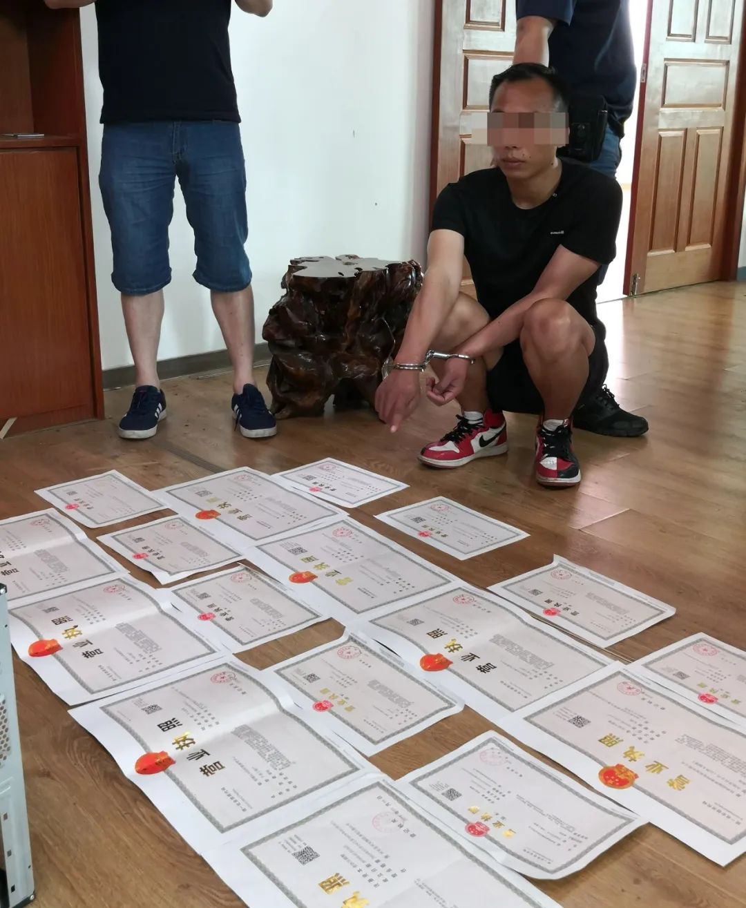 当天,荔浦市局抓获嫌疑人20名,扣押主机电脑18台,笔记本电脑6台,iPad2台,手机291台,P0S机13台,对公账户9套,银行卡147张,手机电话卡281张,现金40000元,车辆3台。↓↓↓
