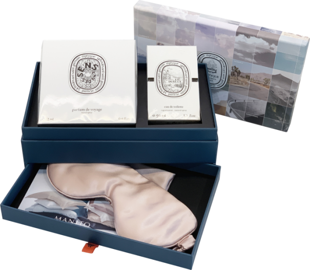 值此七夕之际,diptyque更推出了香氛随行限量礼盒,选用四款经典香型:杜桑、希腊无花果、玫瑰香调、感官之水。礼盒除淡香水外,还内含可随机转换定制图案的旅行装和Manito真丝旅行眼罩,伴侣的爱意如影随形。