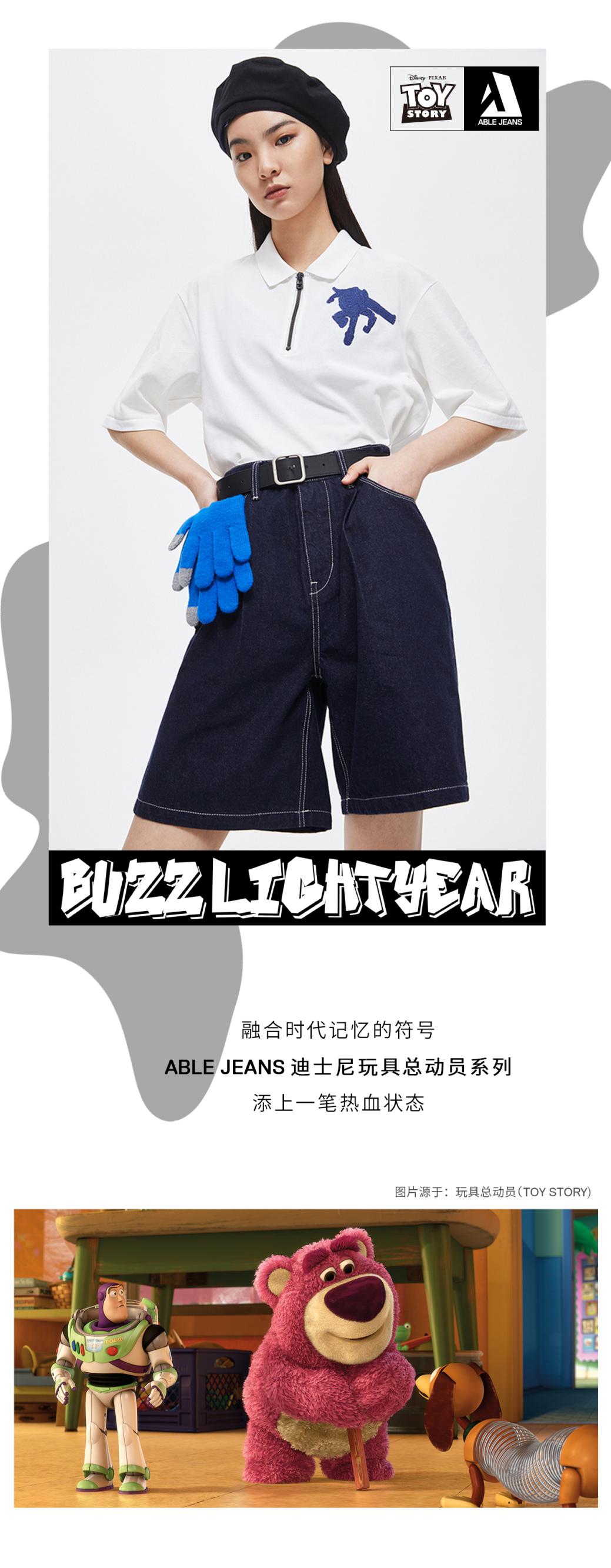 本系列以迪士尼经典动画电影《玩具总动员》中深受观众喜爱的巴斯光年为灵感,不同次元维度的惊喜碰撞,街头潮流与摩登丹宁的融合,呈现专属于ABLE JEANS的设计巧思。鲜明色彩和高质感牛仔,ABLE JEANS 迪士尼玩具总动员联名邀请你进入都市街头牛仔的玩趣魅力。