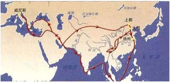 ▲网传马可⋅波罗的旅行路线。和咱的两条丝绸之路默契满分了!