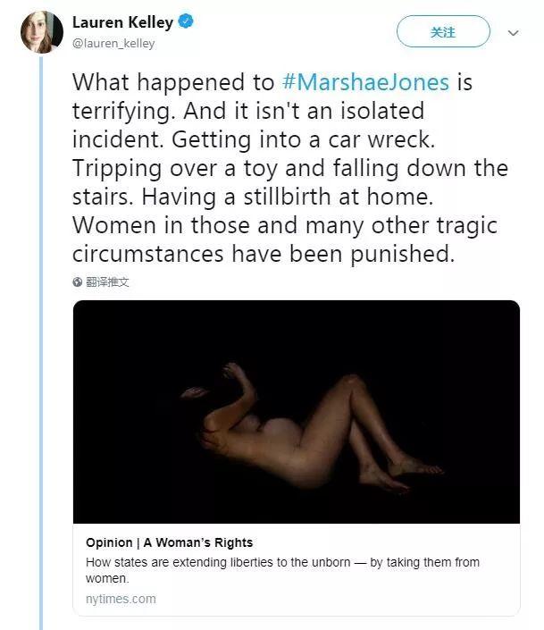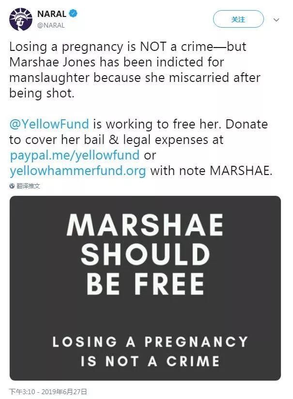堕胎权利倡导组织Yellowhammer基金会的Amanda Reyes在一份声明中说:“Marshae Jones因怀孕和持枪者发生口角而被指控过失杀人。”“明天,可能是另一个黑人妇女,因为怀孕时喝酒被指控。或者是没有做足够的产前护理被指控。”