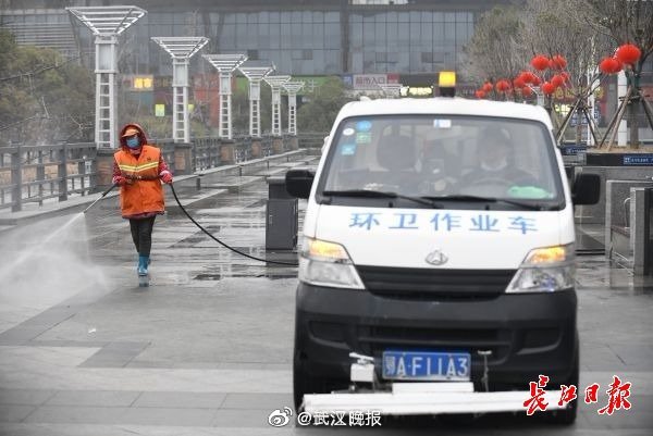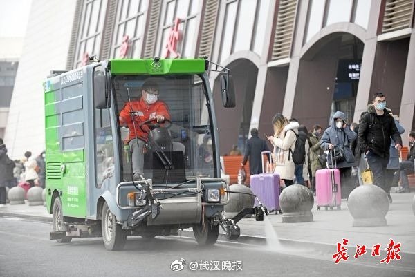 坚决遏制疫情蔓延!武昌站,环卫工人在广场消毒
