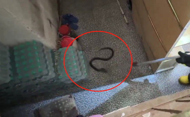 6月5日,宜春市上高县,一居民家中溜进一条长约1.5米的蛇。