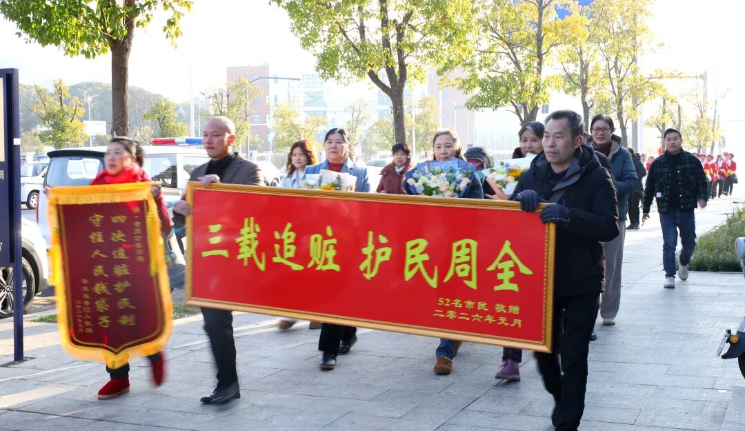 锦旗上“四次追赃护民利 守住人民钱袋子”和牌匾上“三载追赃 护民周全”等金灿灿的大字,在冬日阳光下格外醒目,引来不少市民驻足观看、交口称赞。