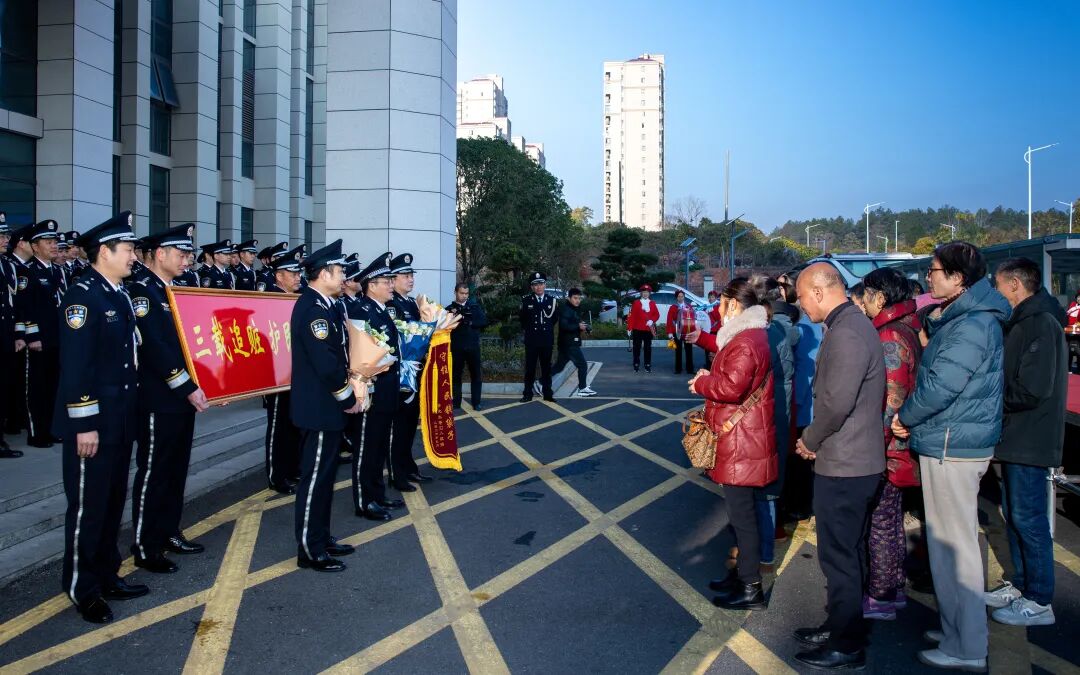 1月9日上午,在第六个中国人民警察节即将到来之际,吉州公安分局城南战训中心大院门前锣鼓喧天、热闹非凡。几十名群众手持锦旗、抬着牌匾,脸上洋溢着喜悦与感激的笑容,自发聚集于此,将一份份沉甸甸的谢意送到民警手中。这场暖心的互动,正是一场“人民警察与群众的双向奔赴”——分局历经三年不懈努力为群众追回赃款,群众则特意选在警察节前夕送上锦旗和牌匾,以最真挚的方式回应公安民警的坚守与付出。