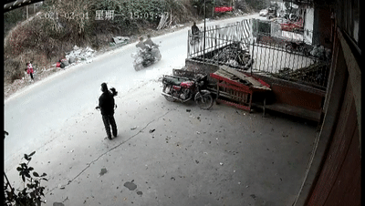 当小女孩跑上车道时,恰逢一辆摩托车疾驰而来。由于摩托车速度过快,直接将小女孩撞飞十数米,监控拍下了恐怖的瞬间。
