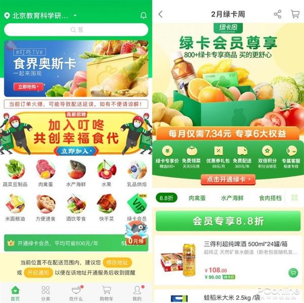 ▲叮咚买菜,绿卡会员部分商品8.8折