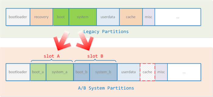 传统的Recovery升级模式,如果写入System系统分区的数据有误,那么机器可能就无法启动,刷机玩家应该很熟悉这一类“变砖”的情况,甚至厂商OTA偶尔也会“变砖”。要如何避免?事实上,近年的新安卓机使用A/B分区机制,很多安卓机已经不需要Recovery来引导升级。