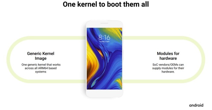 我们知道,Google一直为解决系统碎片化问题做努力,力求设备能够升级最新版本的安卓。为此,Google作了很多努力,例如在安卓8.0中推行了Project Treble机制,将系统(Android OS framework)单独分区,和硬件驱动(Vendor implementation)分离,此后厂商可以为设备单独推送新版安卓,而不需要重新适配驱动。