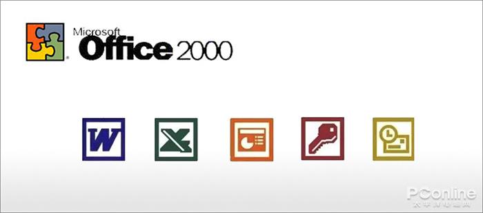 Office 2000发布于1999年,同样也是Office历史上很著名的版本之一,和经典的Office 97相比,Office 2000功能变化不大,仅仅是增加了一些人性化改进。但由于性能与前版差别不多,在实际使用中普及率很高。图标方面,Office 2000采用了与以往完全不同的设计理念,将各版块首字母经过艺术处理后,作为对应组件的LOGO。而这一设计也引领了后代Office设计理念,可谓开创了一个先河。