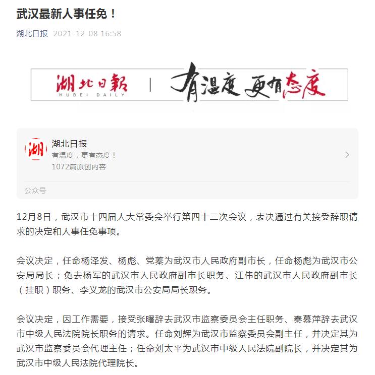 武汉最新人事任免!