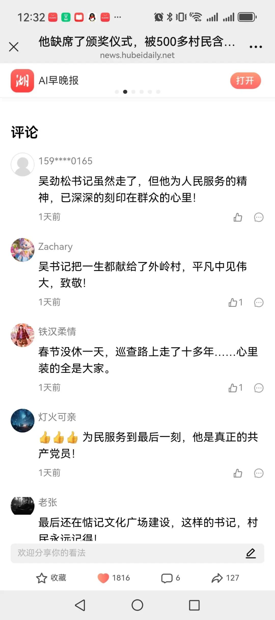 众多网友在湖北日报客户端评论区留言悼念吴劲松。