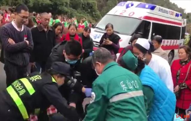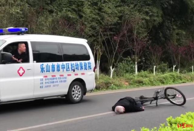 此时正好一辆乐山市市中区妇幼保健院的救护车辆经过,但是司机以有紧急输血任务为由,拒绝了救助老人,随后驶离了现场。
