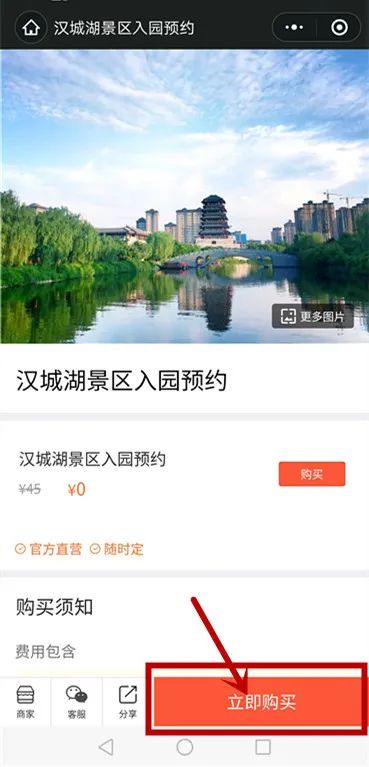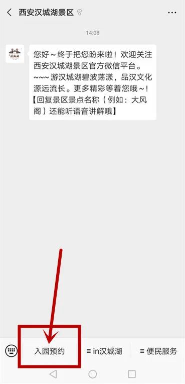 在西安汉城湖景区官方微信公众号下方找到“入园预约”