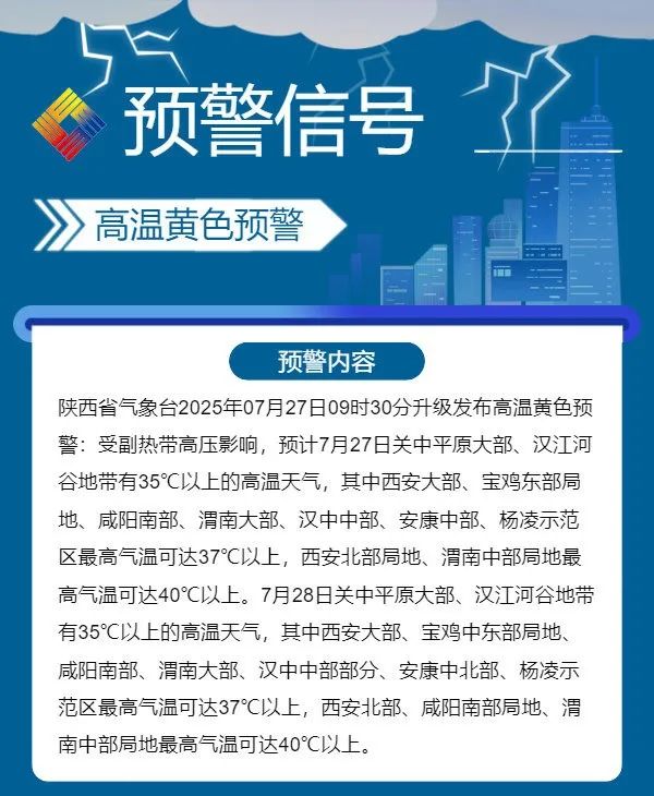 预警升级!局地暴雨+高温预警!陕西最新天气→