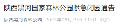陕西黑河国家森林公园紧急闭园通告