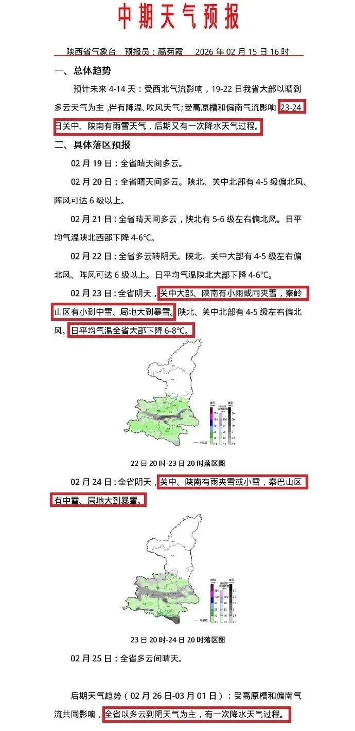 陕西:雨夹雪,局地大到暴雪!23—24日雨雪范围确定