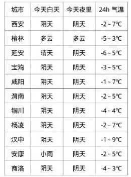关中-12~4℃,最低印台玉华宫站-12.3℃,西安站3.2℃;