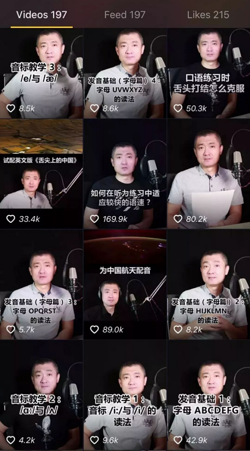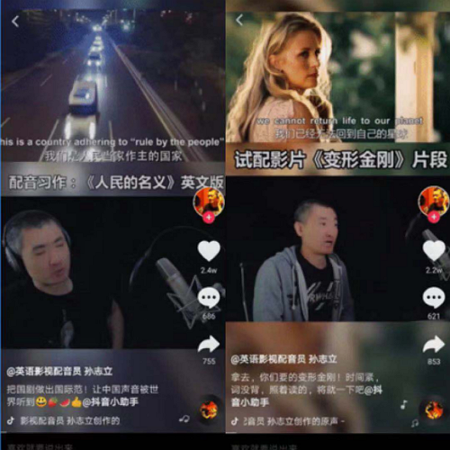 在抖音上,英语影视配音员孙志立的英语教学短视频获得了超过1000万次网友点赞。