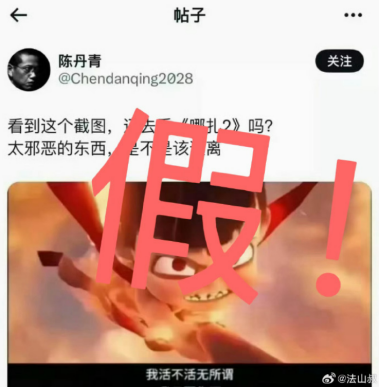 然而,在这场文化盛宴的背后,网络上围绕“流量密码”的谣言与不实信息也逐渐增多——从声称能免费获得《哪吒2》电影资源的虚假消息到对台词翻译的误导信息,从技术抄袭的无端污名化到对文化符号的曲解与误读,甚至还有大量关于导演饺子的不实传闻。