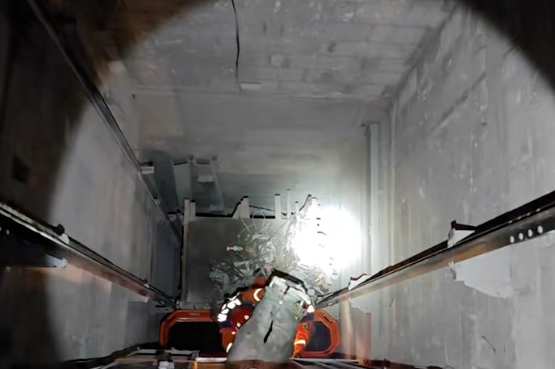 从电梯井底部转移至地面