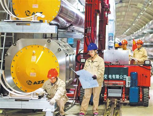 5月2日,湖北省孝感市高新区航天三江重工公司33岁的员工王杰(右一)长年刻苦钻研业务,善解“疑难杂症”,因业绩突出被授予“中青年技能接班人”称号。 晏美华摄(中经视觉)