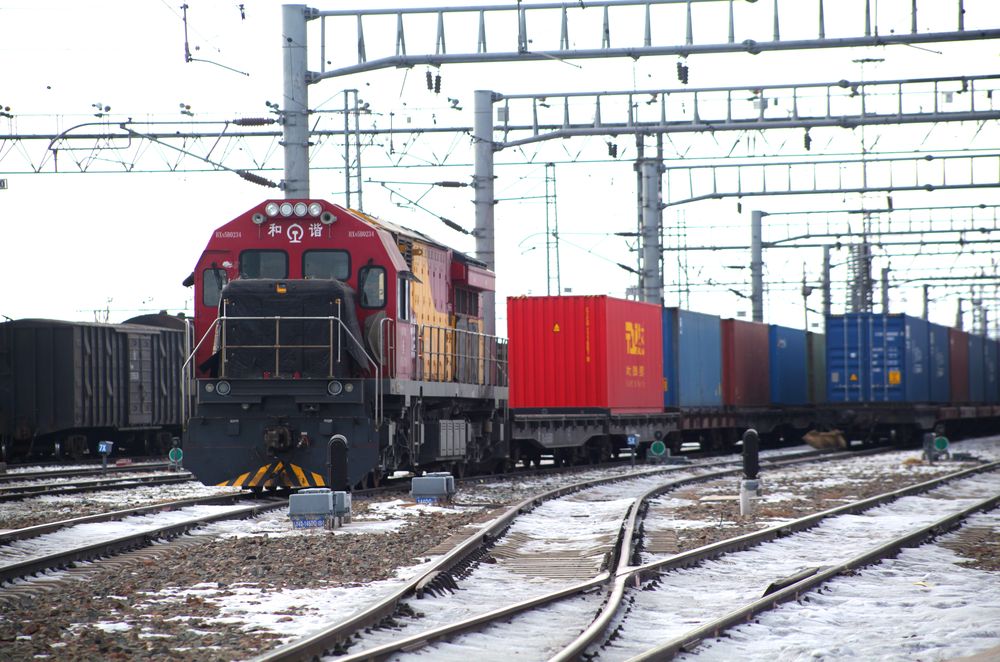 一列中欧班列正驶出阿拉山口站(中国铁路阿拉山口站提供)
