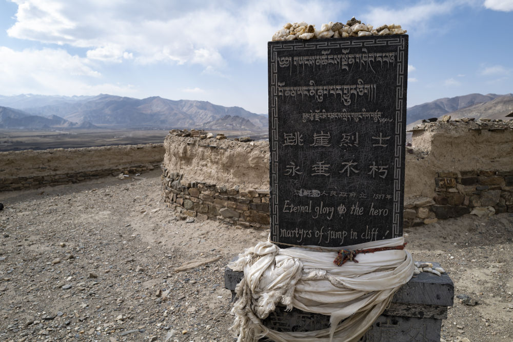 家园涂炭,山河易碎。面对英军的大炮和重机枪,数千英勇的江孜军民不畏强暴,在宗山上用石头、长矛、土枪土炮与英军展开殊死搏斗。弹尽粮绝后,包括白居寺云丹平措在内的60余名英雄宁死不屈,壮烈跳崖。