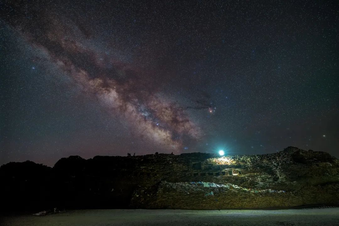 单纯地拍摄银河固然很漂亮,但结合地景会让照片锦上添花,而且地景有标识地理位置的作用。所以拍摄点宜选择视野开阔的高海拔地段、有明显地理标识的自然景观或建筑体、有合适的前景等。