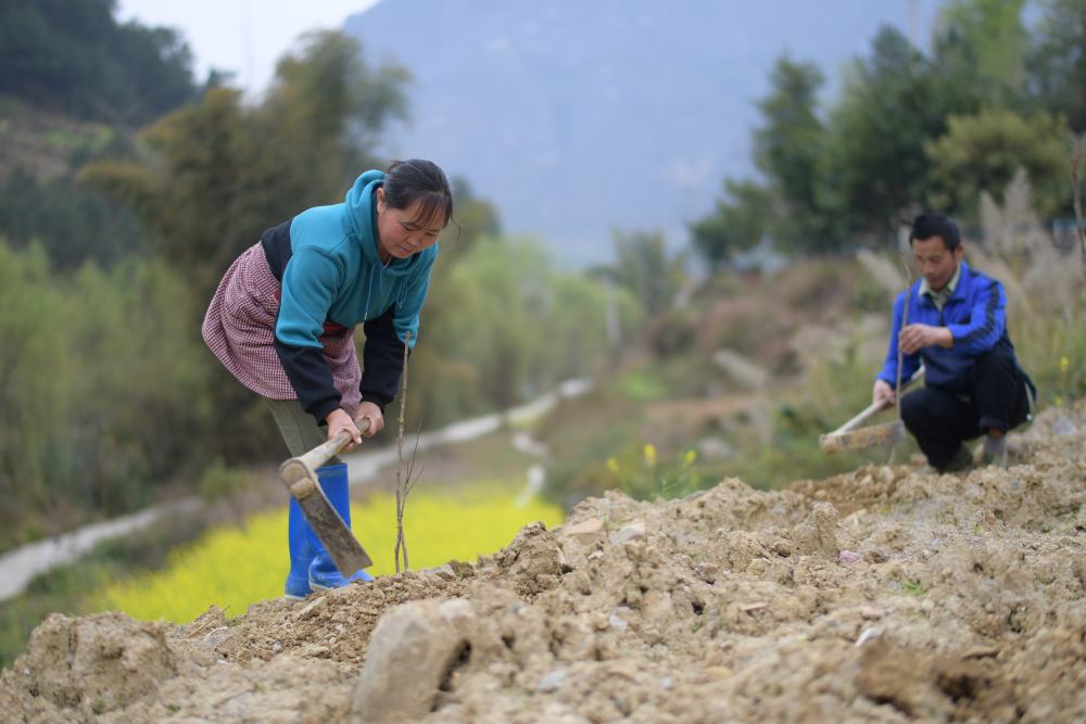 2022年3月9日,村民在贵州省黔南布依族苗族自治州罗甸县沫阳镇大井村种树。新华社记者 杨楹 摄