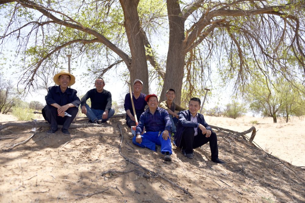图为甘肃省古浪县八步沙林场“六老汉”三代人治沙造林先进群体(资料照片)。