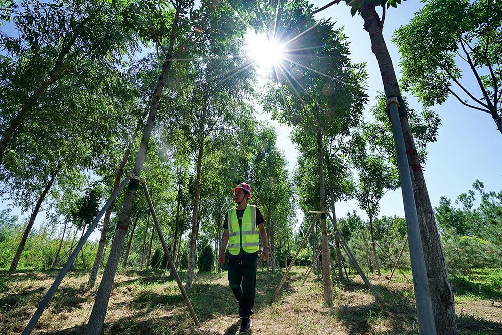2019年8月29日,一名护林员在雄安新区“千年秀林”内巡视。新华社记者 牟宇 摄