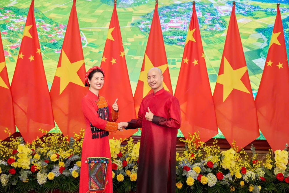 在河内的音乐厅里,越南指挥家童光荣挥动指挥棒,中国作曲家莫双双静静伴奏。这对跨国伉俪用音乐搭起桥梁,将两国观众的心紧紧相连。