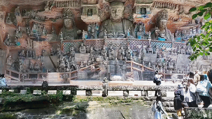 过去几年里,像这样围绕大足石刻展示的文旅新场景、新创意还有不少。舞剧《天下大足》、“云游大足石刻”,还有更早时“上线”的8K球幕电影、大足石刻数字博物馆……崖壁上的石刻正被“讲述者”们以更多元、更年轻化的话语形式表达,被更多人听到和看到。