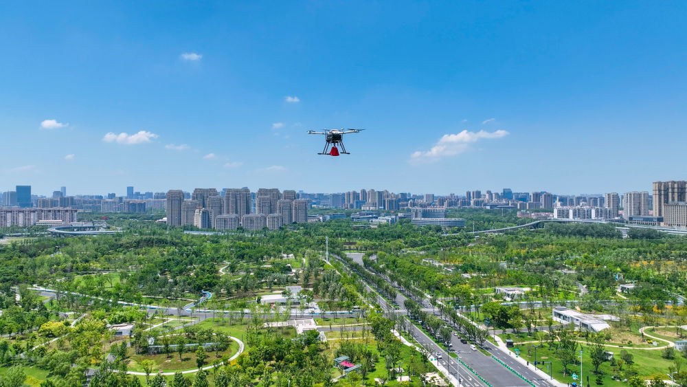 2024年7月5日,无人机在合肥骆岗公园配送外卖。新华社发(罗浩宇摄)