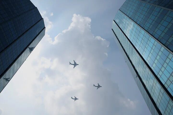 这是运输机梯队接受检阅。新华社记者 金良快 摄